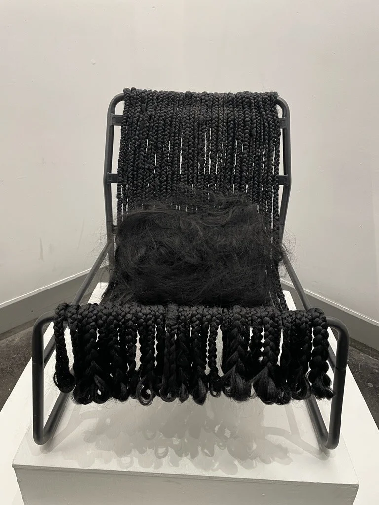 Through this chair, the artist wanted to share that experience with viewers and incite a line of questioning around hair and how it may effect daily lives.